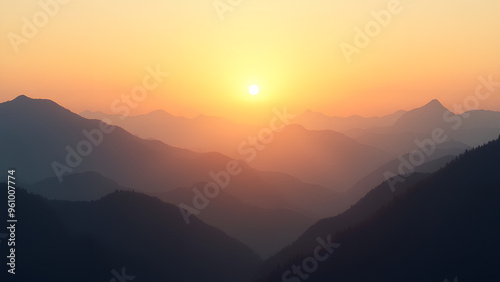 Mystical Morning in the Mountain Range Dawn Light Bathing the Serene Hills Golden Sunrise Over Misty Mountain Layers