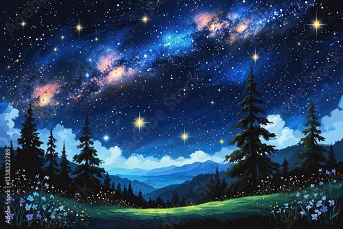 Mystical Night Vector Painting: Celestial Background with Stars and the Milky Way