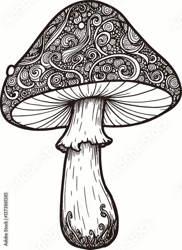 Mystical Swirl Mushroom This artistic mushroom features an intricate swirl design, blending nature with fantasy. Its vibrant purple cap makes it look like a magical forest treasure