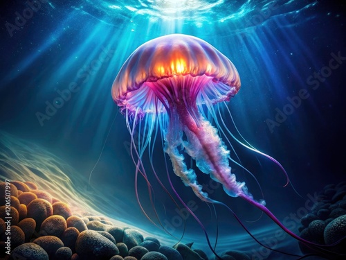 Mystical Underwater Jellyfish Photography: Graceful Bioluminescence in Dark Ocean Depths