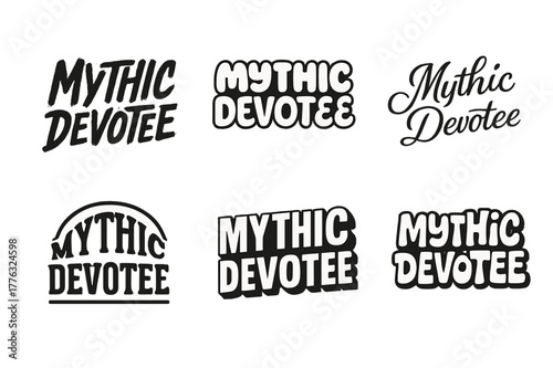 Mythic Lettering Variations. Mythic Devotee. Set lettering. harmonious lettering variations of the same emblematic concept (Grunge textured brush lettering,