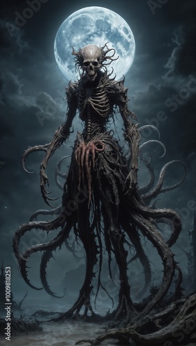 Mythical Creature Sea Monster Under The Full Moon