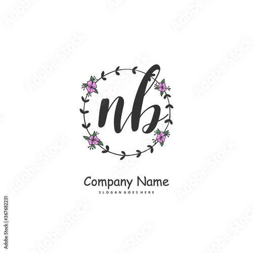 N B NB Initial handwriting and signature logo design with circle. Beautiful design handwritten logo for fashion, team, wedding, luxury logo.