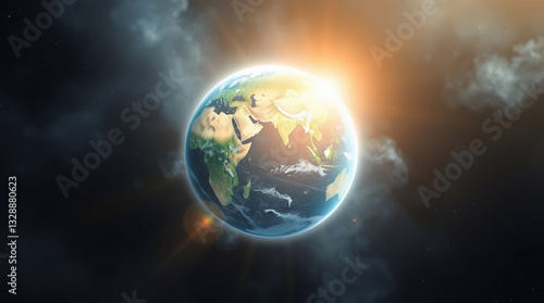 n ethereal and spiritual depiction of planet Earth, surrounded by a light aura and emitting a mystical feeling