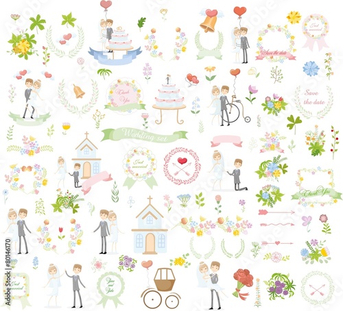 Набор свадебных элементов шаблона дизайна для пригласительных