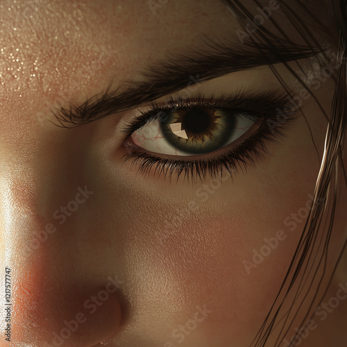 Nahaufnahme eines Frauengesichts, Fokus auf die Augen, ausdrucksstark, emotional, detailliert