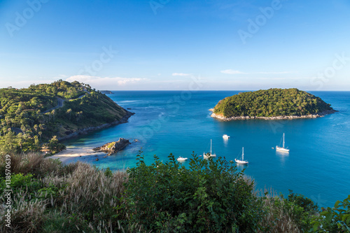 Naiharn bay with yatch boat at windmill viewpoint