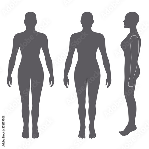 Naked standing woman bald silhouette