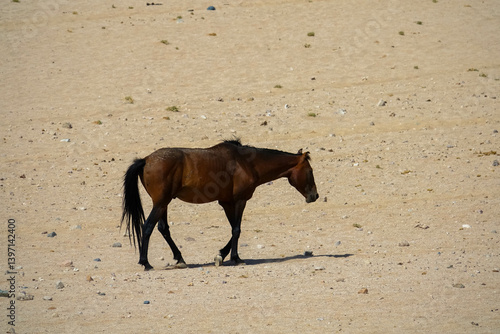Namib Desert Horses in the Kalahari Desert. These feral wild horses live on the grassless, hot plains of Naukluft National Park. Aus, Garib, Namibia