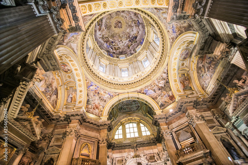 NAPLES, ITALY - November, 2018: Interiors and details of barroco church of the Gesu Nuovo in Naples, Italy.