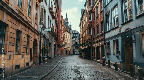 Narrow Cobblestone Street Lined with Historic European Buildings