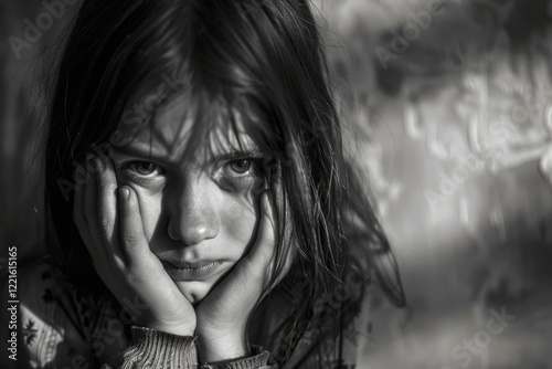 National child abuse awareness month: scared child, covering gesture, emotional wounds, protective instincts, vulnerable children, educational efforts, advocacy against abuse, safety measures.