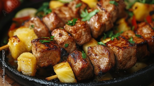National cuisine of Mexico: Pork kebab with pineapples.