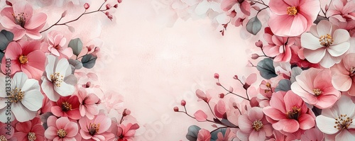 National pink day with feminine and flowers idea. Floral background with pink blossoms and soft colors.