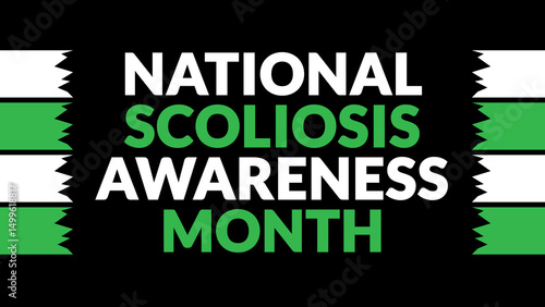 National Scoliosis Awareness Month text with side lines on a black background. Which is observed every year in June to celebrate National Scoliosis Awareness Month.