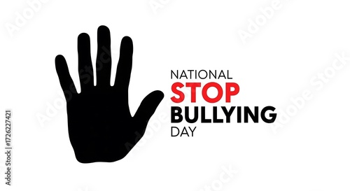 National stop bullying day graphic with a bold black hand symbol and impactful text message