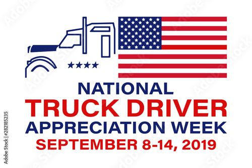 National Truck Driver Appreciation Week. Celebrate in September 8-14, 2019 in the United States. Design for poster, greeting card, banner, and background.