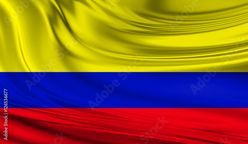 National waving flag of Colombia on a silk drape