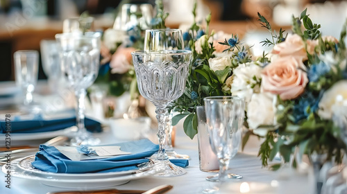National Wedding Planning Day Elegant wedding table setting with floral centerpieces and blue accents