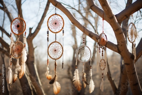 native american dreamcatchers hanging from a tree branch