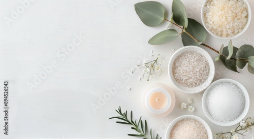 Natural Bath Salts and Oil on White Background