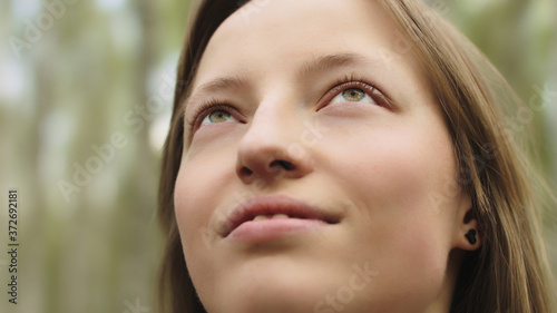 Natural beauty. Young woman with green eyes with no make up in the nature. High quality photo