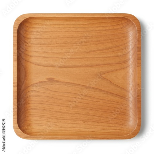 Natural Brown Wood Tray with Carved Texture Pattern - Square Wooden Plate Empty Serving Dish