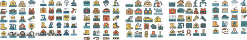 Natural Disaster Flood Emergency Rescue Icons Set.