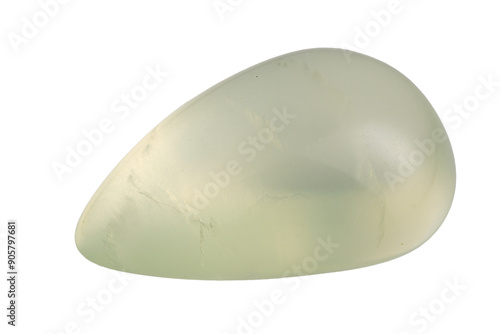 natural green prehnite gem on the white background