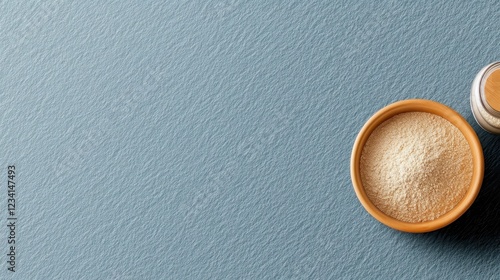 Natural Ingredients for Cooking and Baking on Soft Blue Background