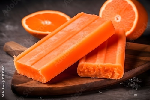 Natural juicy orange popsicles. Refreshing ice pops. Neural network AI generated art