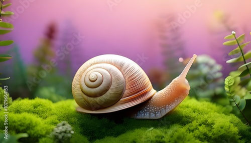 Natural macro shot. Snail shell close-up, botanical textures, high-detail environment, 3D illustration.