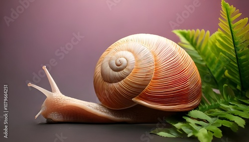 Natural macro shot. Snail shell close-up, botanical textures, high-detail environment, 3D illustration.