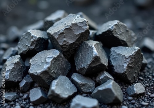 Natural mineral rocks stacked on ground surface in outdoor setting
