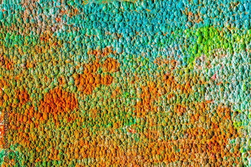 Natural multicolored background with patina rusty copper plate. lunar, martian landscape.