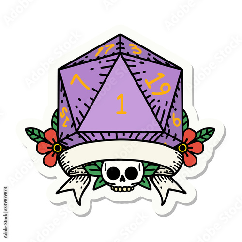 natural one d20 dice roll sticker