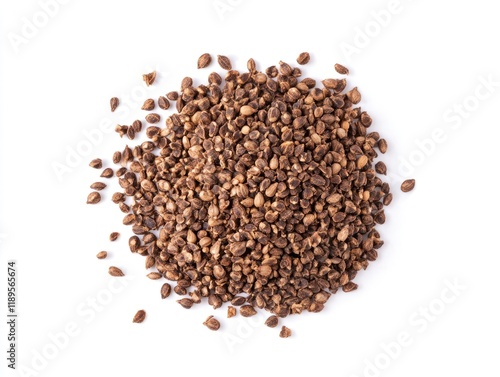 Natural Pile of Raw Tomato Seeds on White Canvas, Top View - Fresh Organic Ingredient for Healthy Vegetable Planting