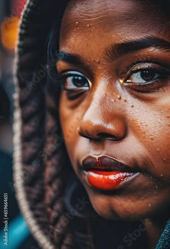 natural portrait of a black woman, close up on face. generative ai