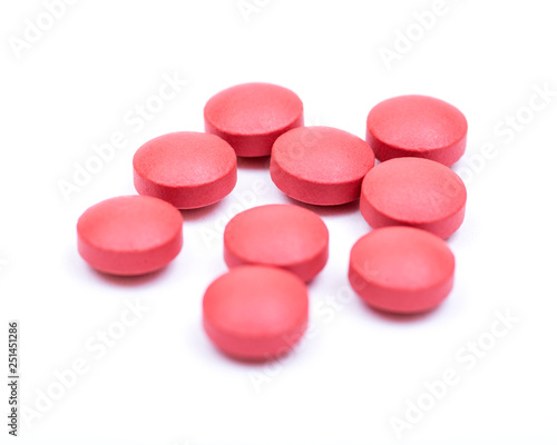 Natural stimulant laxative and stool softener. Sennosides & Docusate sodium film coated tablets isolated on white background.