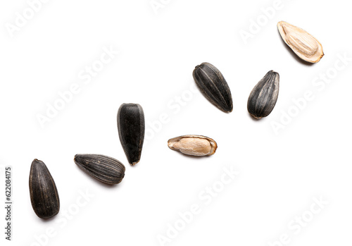 Natural sunflower seeds isolated on white background