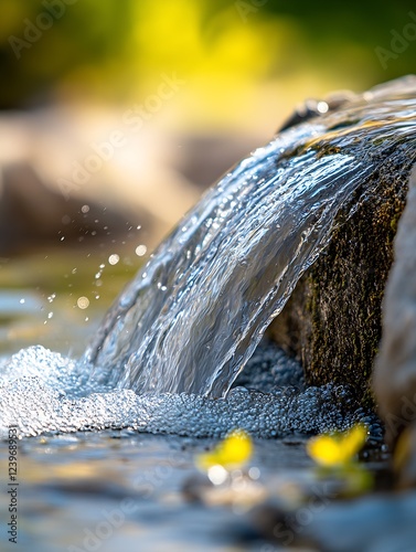 Natural Water Flow Over Rock Creating Beautiful Bubbles in a Tranquil Setting : Generative AI