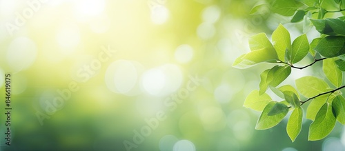 Nature abstract background of fresh green leaves with blurred green bokeh from a tree, ideal for product display or advertising on social media with a spring or summer theme - copy space image.