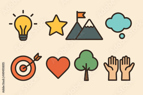 Nature and ideas icons set – outline, linear, inspiration and environment symbols
