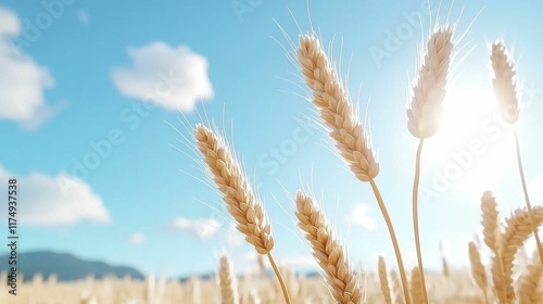 Nature Calming Rhythms Golden wheat against a bright blue sky.