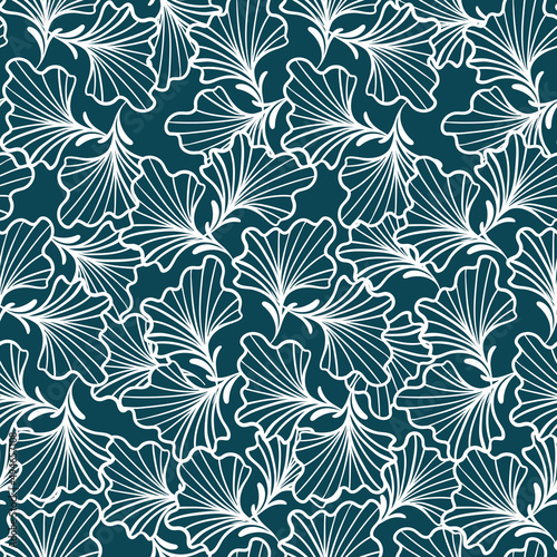 Nature Dark green background vector with white leaves , Floral seamless pattern, plant leaves vector illustration.Design for fashion , fabric, textile, wallpaper, cover, web , wrapping