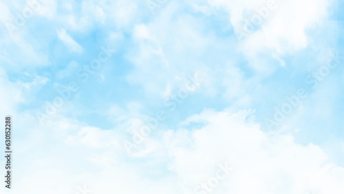 Nature Landscape Background with Blue sky and Fluffy white Realistic clouds. Vector illustration.