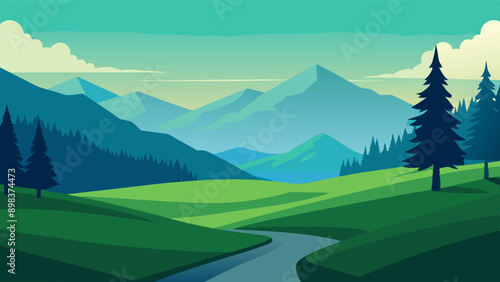 Nature landscape background with green grass and trees vector illustration