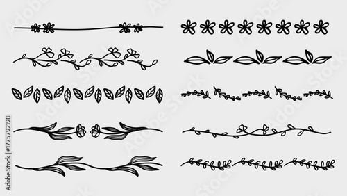 Nature Leaves and Flowers Line Divider Drawing Set Simple Botanical Collection.Vector Illustration, great for stylish wedding and invitation design.