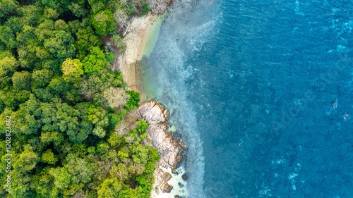 Nature of the beach and sea Summer with sunshine, sandy beaches, clear blue waters sparkling against the blue sky. On an island with good ecology and environment Background for summer vacation