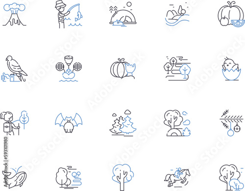 Nature outline icons collection. Nature, Wilderness, Outdoors, Environment, Landscape, Sky, Plants vector and illustration concept set. Trees, Animals, Ecology linear signs